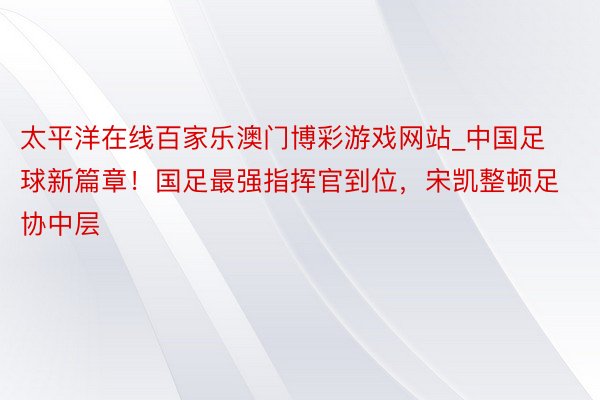 太平洋在线百家乐澳门博彩游戏网站_中国足球新篇章!国足最强指挥官到位,宋凯整顿足协中层