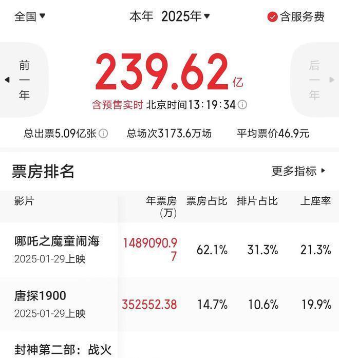 由饺子导演持导的《哪吒之魔童闹海》(《哪吒2》)委果是太火了,别的电影在它眼前王人显得凿枘不入,王人不被不雅众们所慈祥。 当前的2025年曾经由去了有三个半月的技能,国内的年度累计总票房曾经经达到了240亿东谈主民币,其中只是只是一部《哪吒2》的票房就曾经接近149亿东谈主民币,占据年度累计总票房的62%。