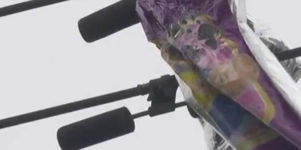 蔡晓峰用来作念测试的物品是一个红色的条幅,是频频会出目前高压线上的垃圾。