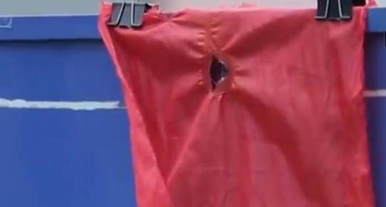 然而20分钟往常了,红色塑料袋固然从中间被击中,但是并莫得完全断裂,